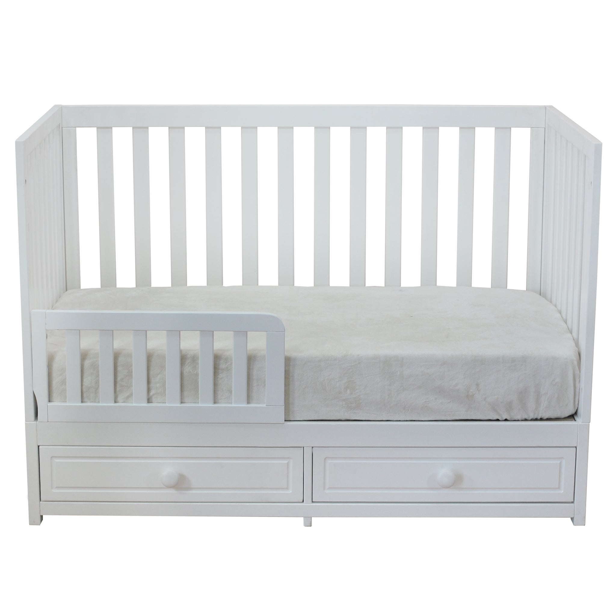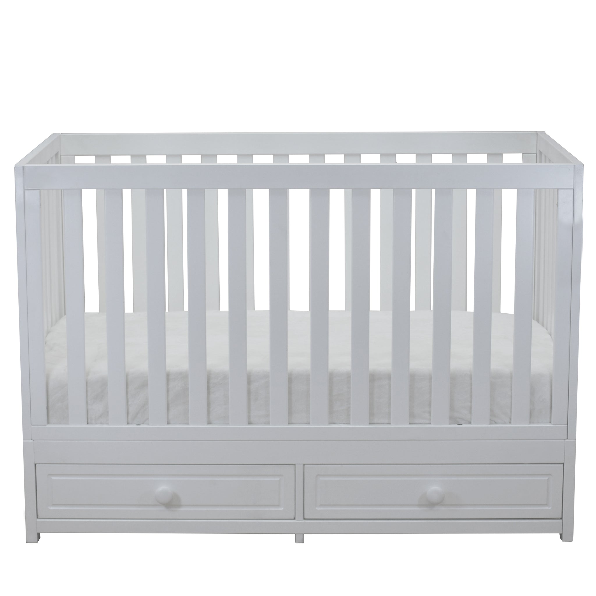 - Two large drawers attached under the crib