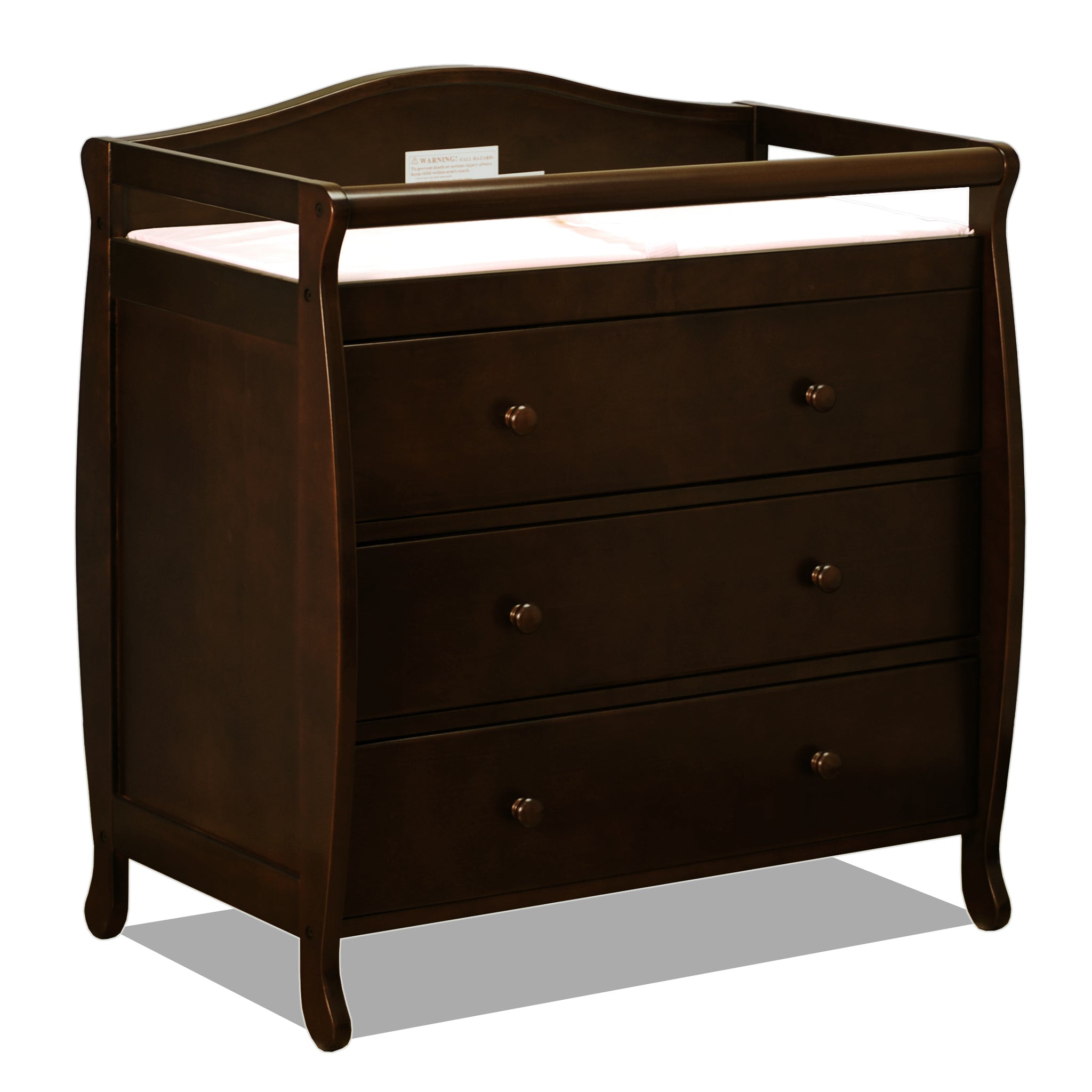 The handsome craftsmanship and solid hardwood construction of the Grace 3-Drawer Changer provides three drawers that are deep enough to hold blankets and other needs which glide smoothly over metal runners. Sleigh style cues across the changer allow it to easily pair with other pieces in the Athena collection. A dual function changer provides ease of use, a mini chest and a changing tabletop. Changing pad sold separately.