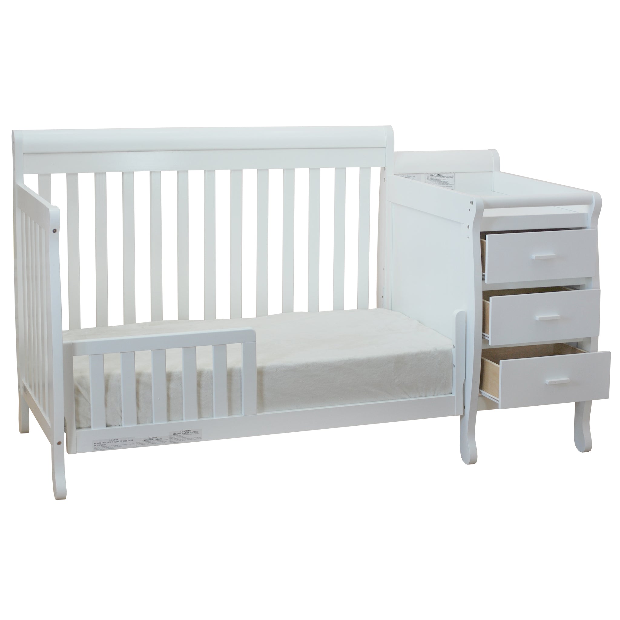 The Kimberly crib is perfect for the space-conscious family. Its versatile build creates the perfect baby station. The changing table comes equipped with three drawers and two unit shelves that can later be used as a nightstand/dresser. Its durable and non-toxic finish makes the crib easy to maintain.