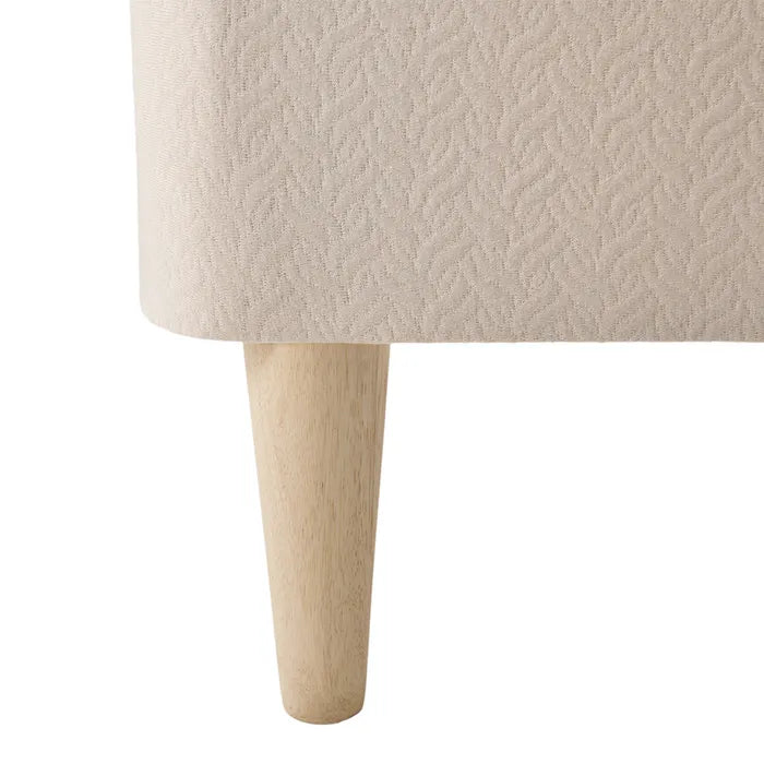 The frame is made from solid North American wood, and the fabric is certified organic cotton, free from flame retardants, glues, and synthetic foams.