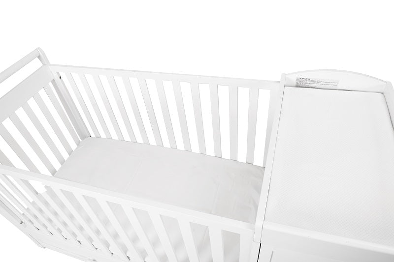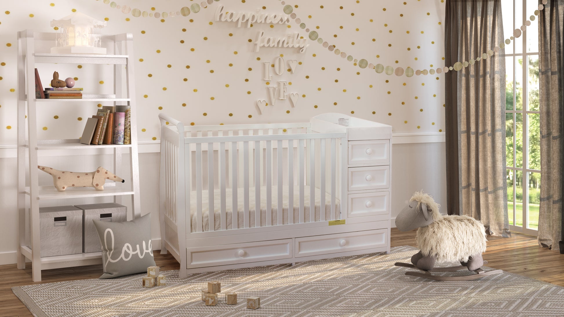 The Daphne 3 in 1 crib and changer combo is perfect for the space-conscious family. Its versatile build creates the perfect baby station. The changing table comes equipped with three drawers and two unit shelves that can later be used as a nightstand/dresser. The crib can later be converted into a youth bed. Its durability and non toxic finish makes the crib easy to maintain.